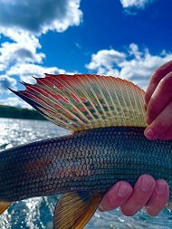 Jeden den jsme strávili na lososí řece, lososa jsme nechytili, ale podařil se krásný pstruh. V průběhu rybaření se řeka značně zakalila po předchozích deštích a my zaveleli k ústupu.