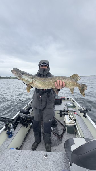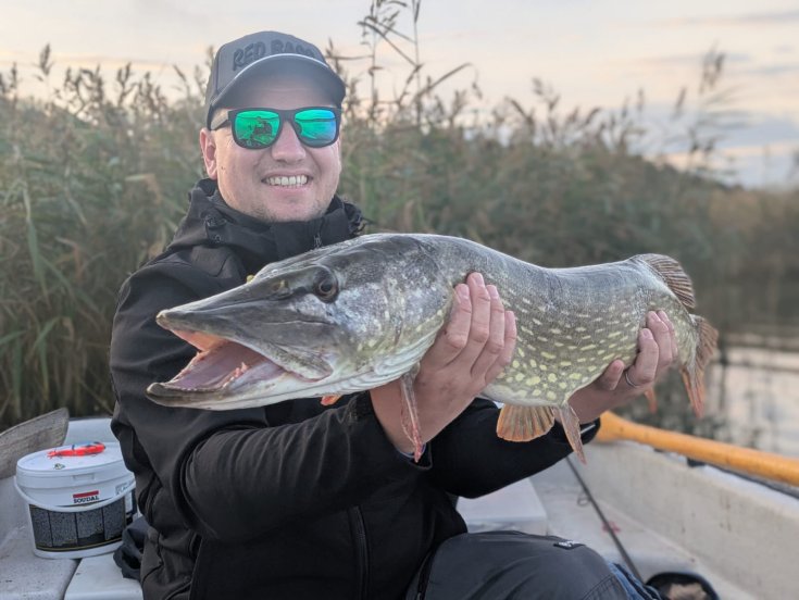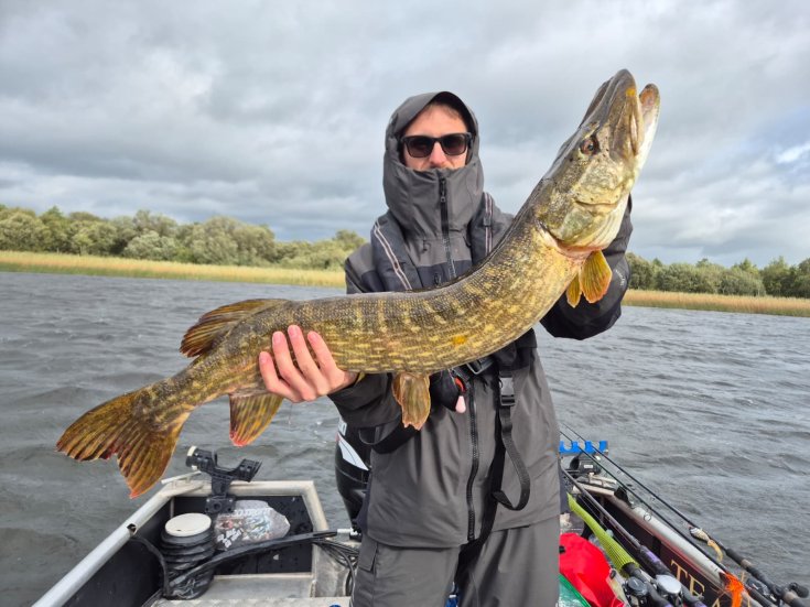 Ivo a Saša byli dnes na jezeře Kloo na štikách. Teda ráno zkoušeli i siveny, ale byli bez záběru a dopoledne jim tam nešly ani štiky a nešly ani přes poledne, dokonce ani ve 14.00 neměli ani rybu a teprve kolem 15.00 začaly štiky brát a pak to byl mazec, kdy chytali jednu a druhou. Tři byly kolem metru, nejdelší měřená měla 102 cm.