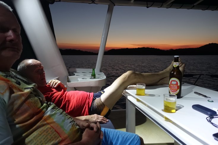 V 17.15 velí kapitán k návratu a před šestou večer jsme zpět v kotevní zátoce u mateřské lodě, právě včas, abychom stihli večerní koupačku a pivko na horní palubě dříve, než nám personál na grilu připravil steaky ze zebu, úžasné langustini resp. velké krevety a skvělý čokoládový mouse. - Zdenek 28.10.2025 07:14