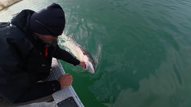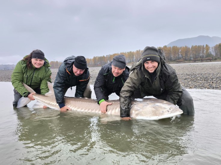 Posádka s průvodcem Chrisem zamířila opět na Harrison, druhá loď s průvodcem Peterem chytala na Fraseru. Na Fraseru bylo zdoláno 11 jeseterů od cca 140 do 238 cm. Na Harrisonu 9 jeseterů cca 150-220cm. - Borek 29.10.2025 23:27