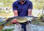 2 štiky délky 90 cm (jedna na gumu Shad 15 cm a druhá na stříbrnomodrou plandavku