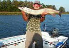 Zachytali jsme štiky běžných velikostí do 85 cm. Tentokrát žádné trofeje. Já osobně jich měl jen pět, ale na lodičce jsem strávil asi deset hodin (ne denně, ale za celý týden). Můj bratr jich měl asi 35. Určitě naše výprava štikám neublížila neb si poslední den dávali štiky ke mně do bedny a měli tak 1-2 na osobu.