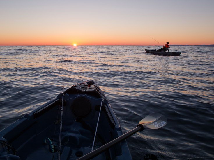 K dispozici jsme měli tři různé rybářské kajaky od výrobce Jackson Kayak, které se vlastnostmi poměrně značně lišily. Dle mého soudu, dva z nich (Big Tuna a Big Rig) nejsou pro mořský rybolov příliš vhodné, jsou to takové “pramice”, které se na vlnách houpou místo toho, aby vlnu prořízly. Na vodní plochy bez větších vln ale budou ideální, obzvlášť pro větší a těžší rybáře, případně pro toho, kdo s sebou rád vozí více výbavy. Poslední typ kajaku (Cuda 14) je ovšem přesně do takových podmínek navržený a rybolov z něj byl z mého pohledu nejkomfortnější a i přesun na větší vzdálenost rychlejší díky tvaru trupu, kde ostrý kýl vlnu prořízne, čímž eliminuje do jisté míry houpání na vlnách. Každopádně díky opravdu velmi příznivému počasí se dalo úspěšně lovit ze všech zkoušených typů. Vzhledem ke vzdálenosti, kam jsme obvykle jezdili rybařit, nebylo v našich silách dopádlovat celou vzdálenost od přístaviště, dělali jsme to metodou, která se nazývá “mothershiping”. Do téměř 6 m dlouhé lodě