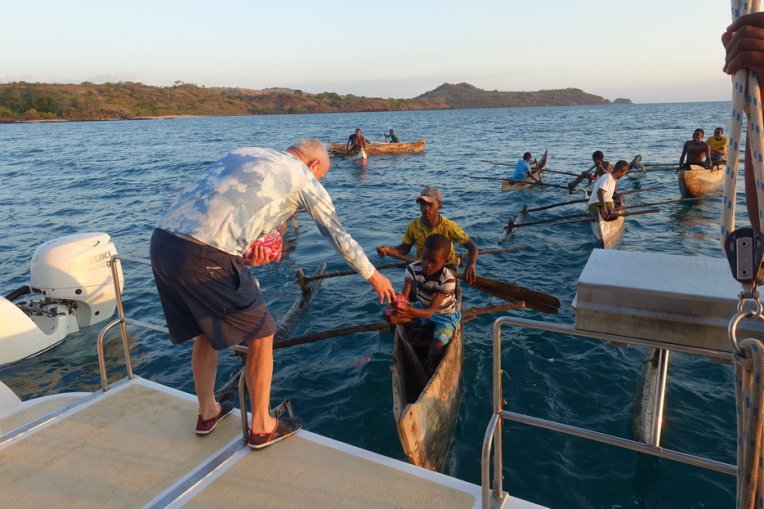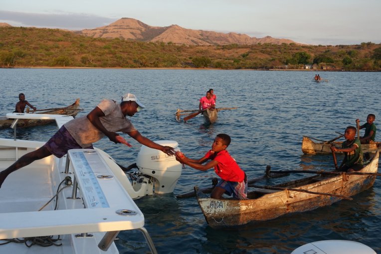 V sedm jsme přestoupili na rybářskou loď a vyrazili k severu. Hned za ostrovem Mitsio jsme vjeli do více než metrových vln způsobených silným větrem od východu.