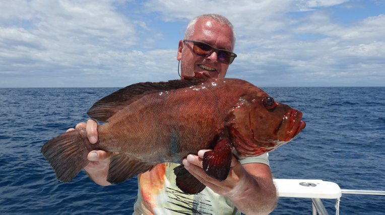 Zdeněk – 3x kranas obrovský-GT 55-80 cm, 1x payarina 90 cm, 1x jehlice 110 cm (na modrý jerk BF100 a na bílorůžový popp 15 cm). Na vertikál 3x chňapal růžový 60-70 cm, 1x bonito 60 cm, 1x kanic měsíční 25 cm a 1x velká utržená ryba u dna a 3x ukousnutý jig.