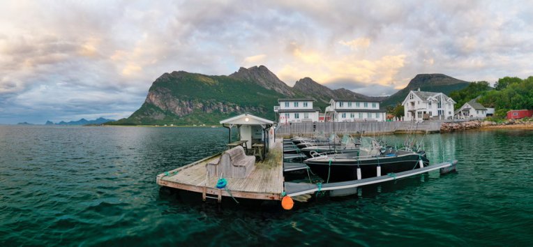 Komfortní apartmá ve stylu tradičních „rorbu“ stojí na západním pobřeží poloostrova Steigen, na okraji osady Nordskot, v místech, kde jižní okraj Skotsfjordu ústí do oceánu, resp. do vod Vestfjordu. Od domu se za dobrého počasí otevírá výhled k souostroví Lofoty a v letním období na půlnoční slunce.